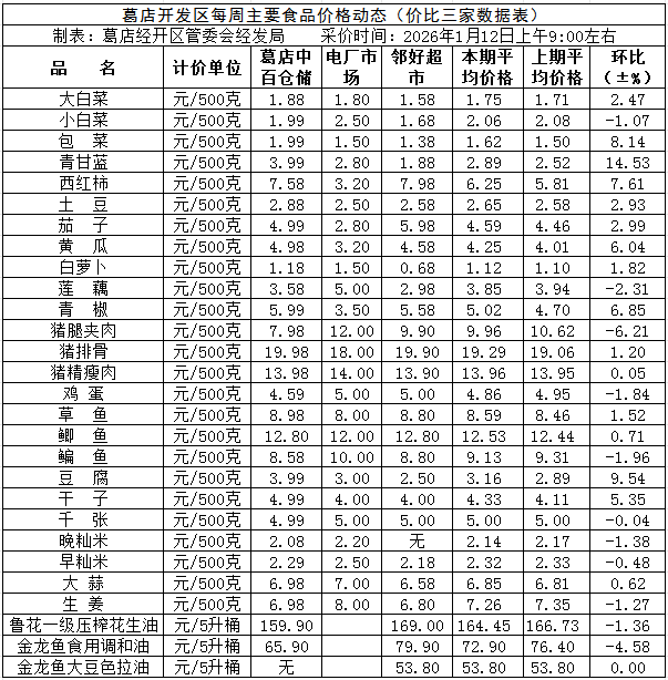 葛店开发区2026年1月12日价比三家.xlsx